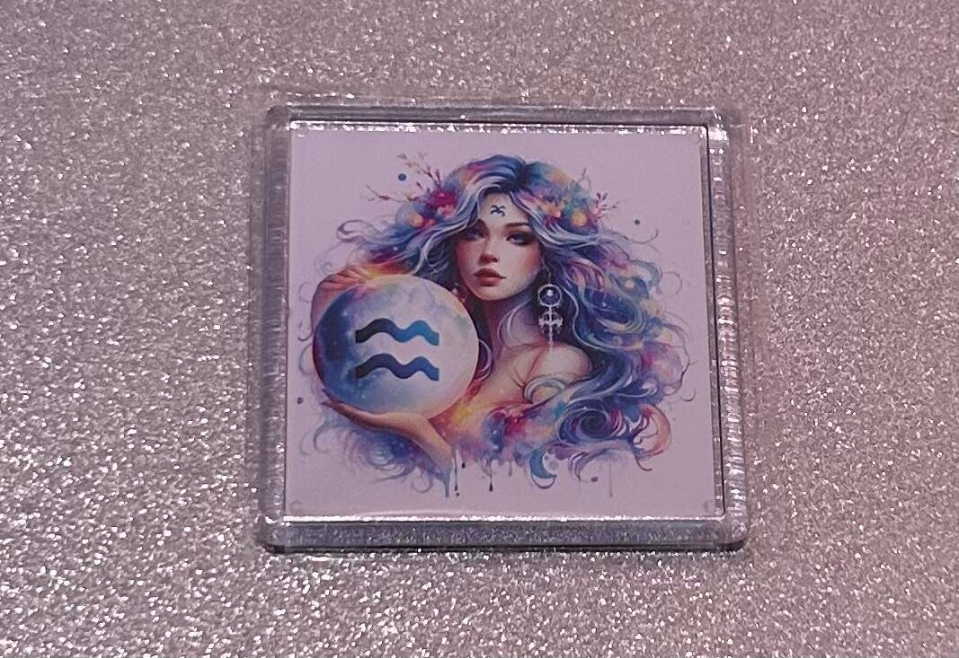 Horoscope girl and moon square fridge magnet